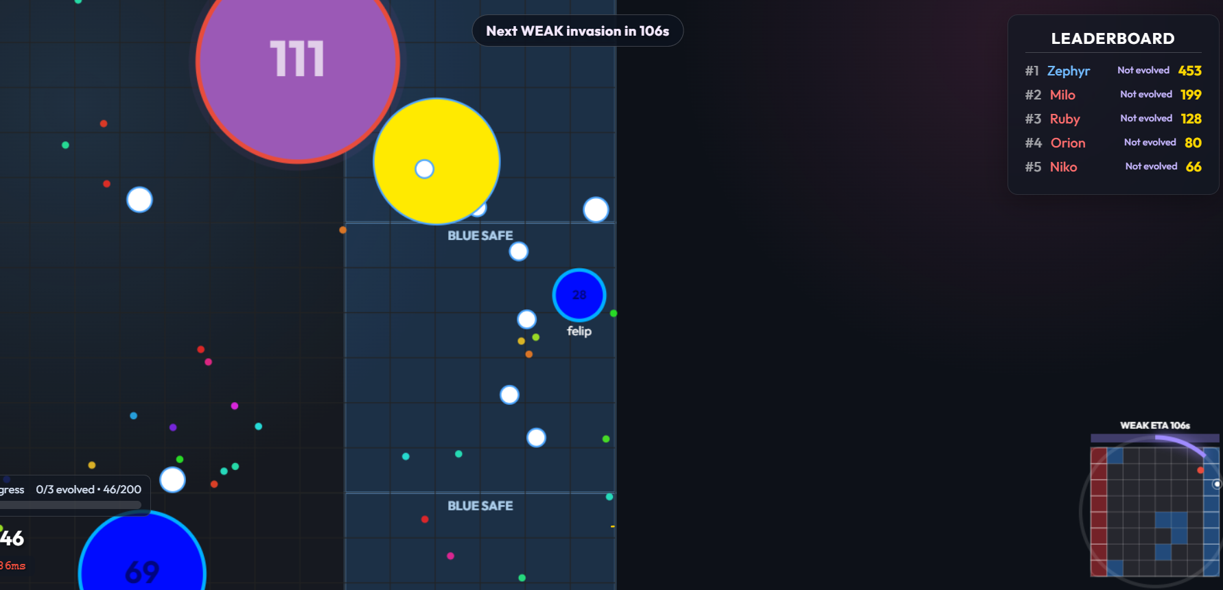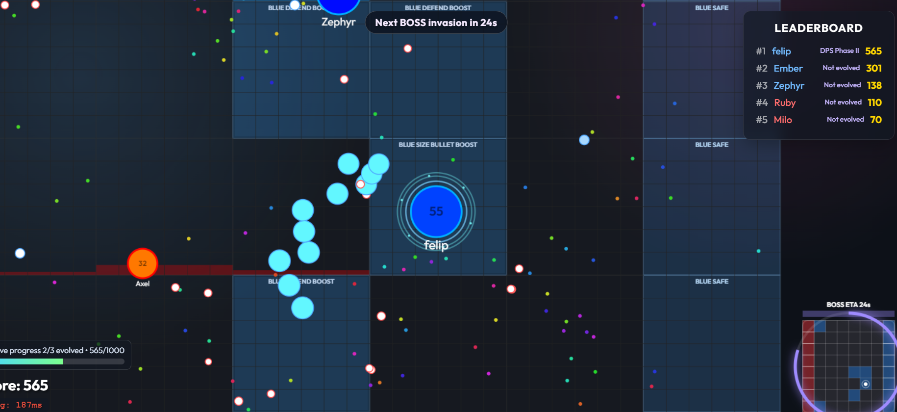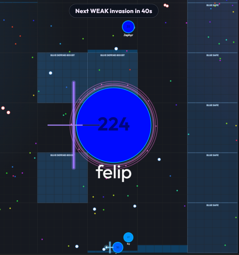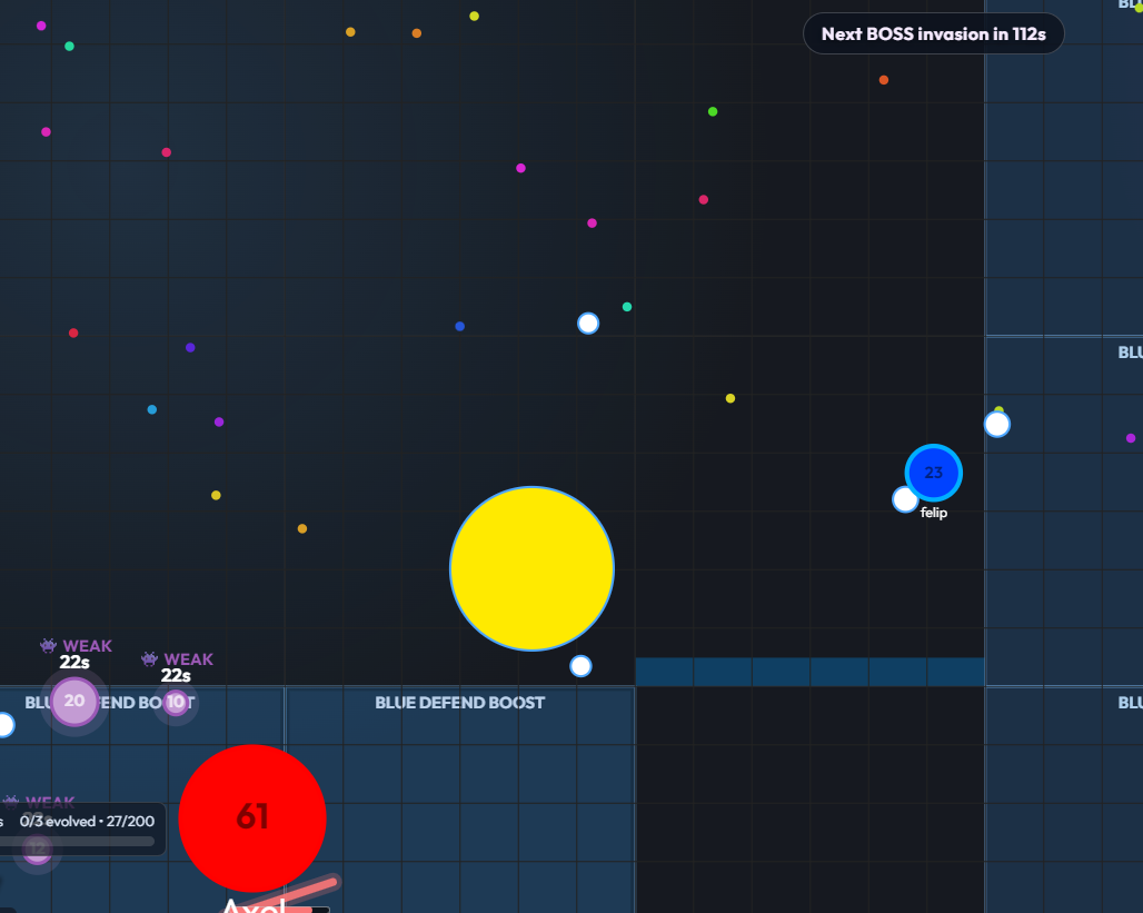 DOTWARS is a fast-paced browser multiplayer arena inspired by classic cell-growth games — but expanded with team strategy, territory control, and PvE invasions.